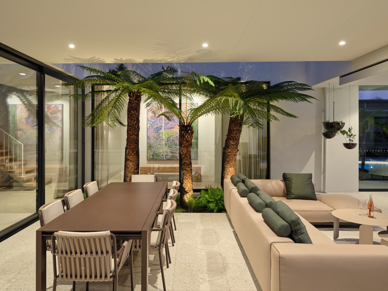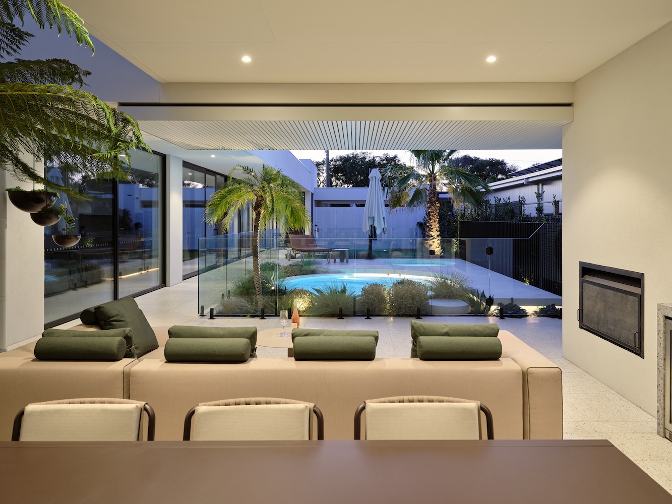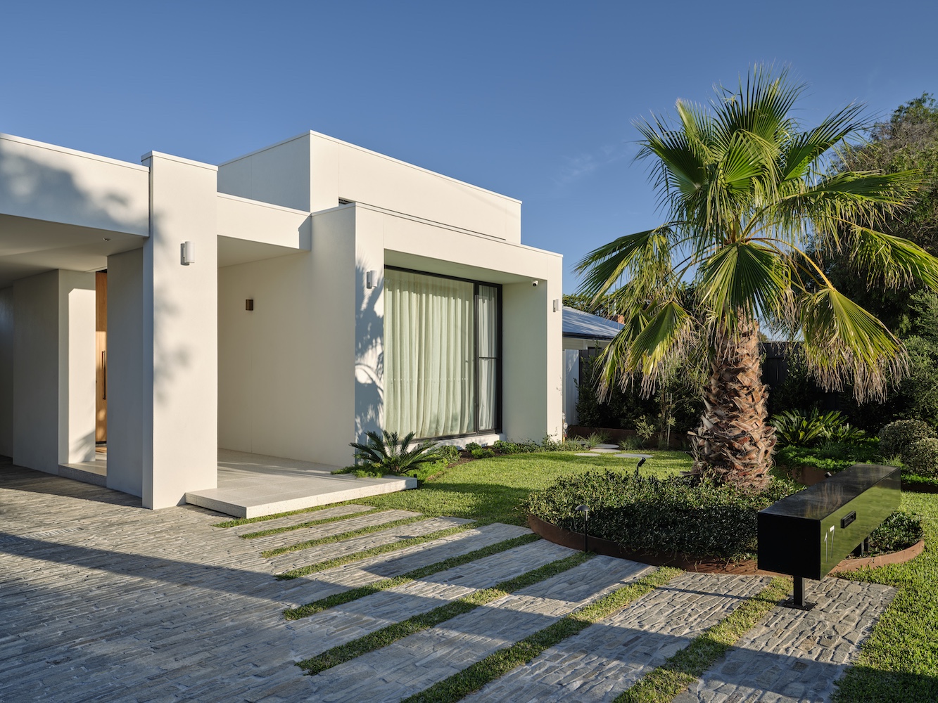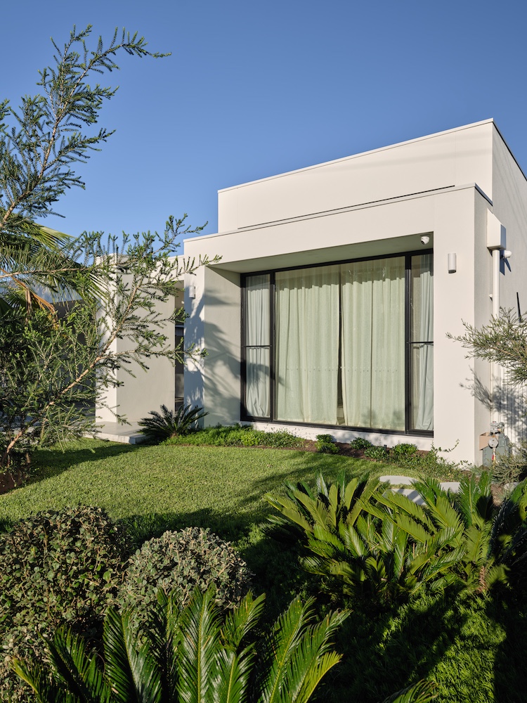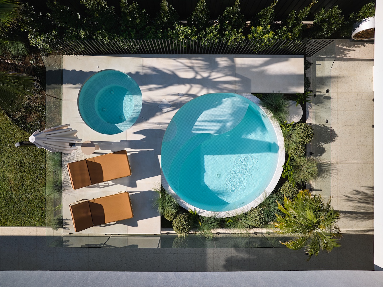 This exciting Mornington Peninsula beach side project encapsulates the design brief from the clients of a fun, relaxed yet highly sophisticated outdoor space that complimented the interiors of the home while softening the large built form of the home. The clients didn’t want a large pool so we created this highly functional and visually appealing round plunge pool with separate round spa to add a playful element to the now well defined, intimate courtyard just off the alfresco entertaining zone. Carefully selected coastal and exotic architectural planting soften and frames the pool scape and front facades of the home. The pool and garden are user friendly with minimal maintenance required to suit the occasional weekend use of the holiday home.